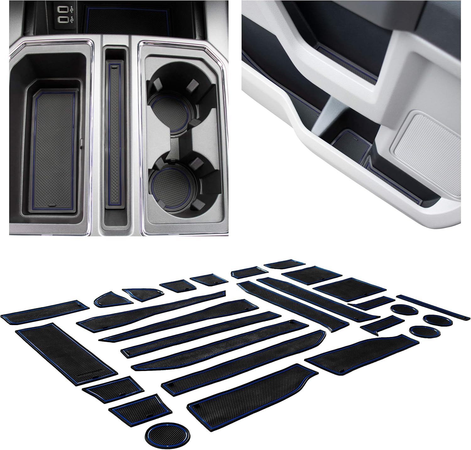 Amazon Com Cupholderhero For Ford F 150 Accessories 2017 2020 Premium Interior Non Slip Anti Dust Cup Holder Inserts Center Console Liner Mats Door Pocket Liners 28 Pc Set F150 Supercrew Dark Blue Trim Automotive
