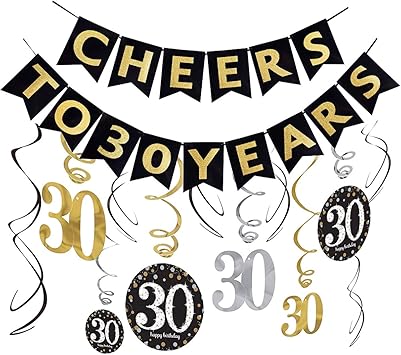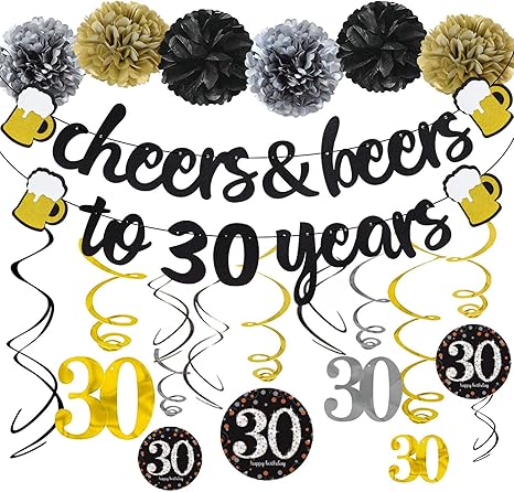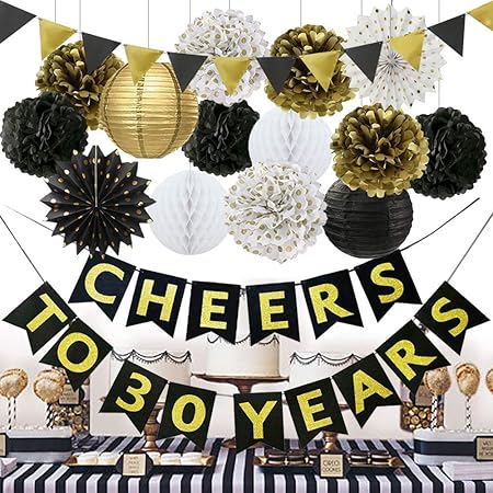 30th Wedding Anniversary Decorations Set 30th Birthday Party Decorations Kit Black Gold Cheers To 30 Years Banner Tissue Pom Poms Flowers Paper Lanterns Paper Fans Paper Triangle Garland Amazon Co Uk Kitchen Home
