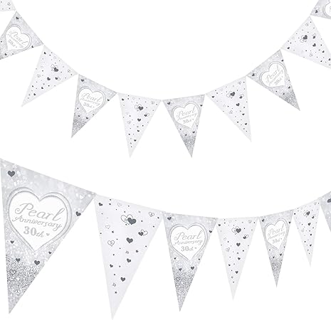 2 Pieces 30th Anniversary Banner Pearl Anniversary Bunting Flags Heart Themed Wedding Anniversary Decorations Hanging Pennant Banner For 30th Wedding Anniversary Valentines Day Amazon Co Uk Kitchen Home