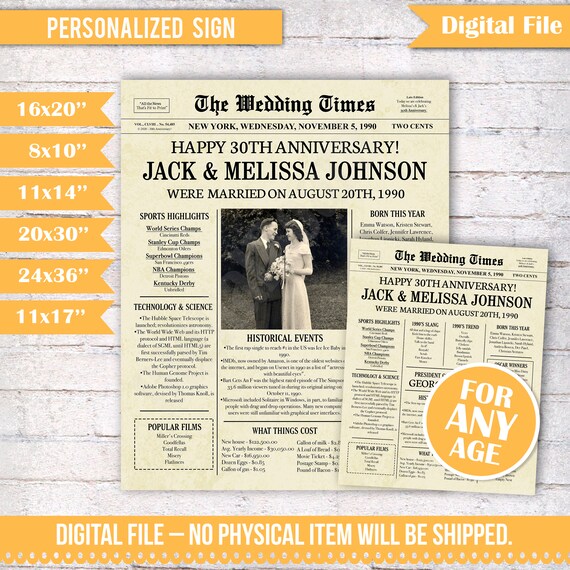 30th Anniversary Gift For Parents 30th Anniversary Newspaper Etsy