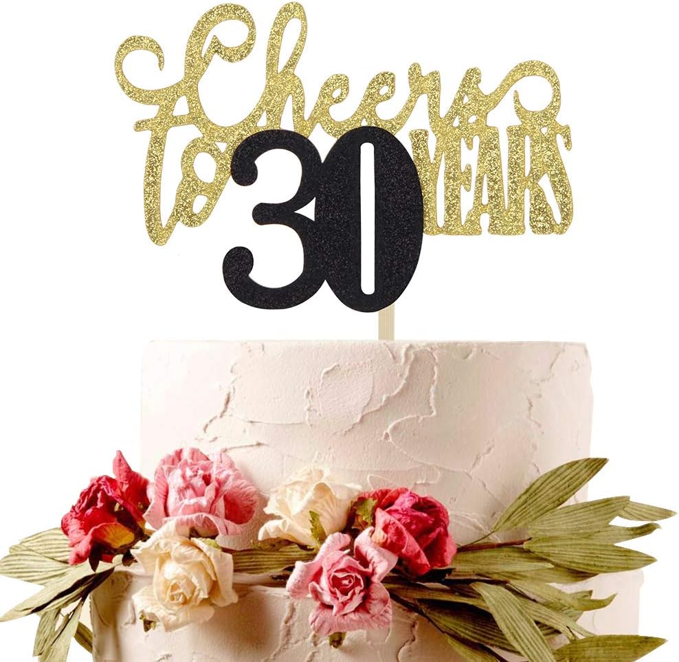 Cheers To 30 Years Cake Topper For 30th Birthday Wedding Anniversary Party Decorations Silver Glitter Party Supplies Cake Toppers