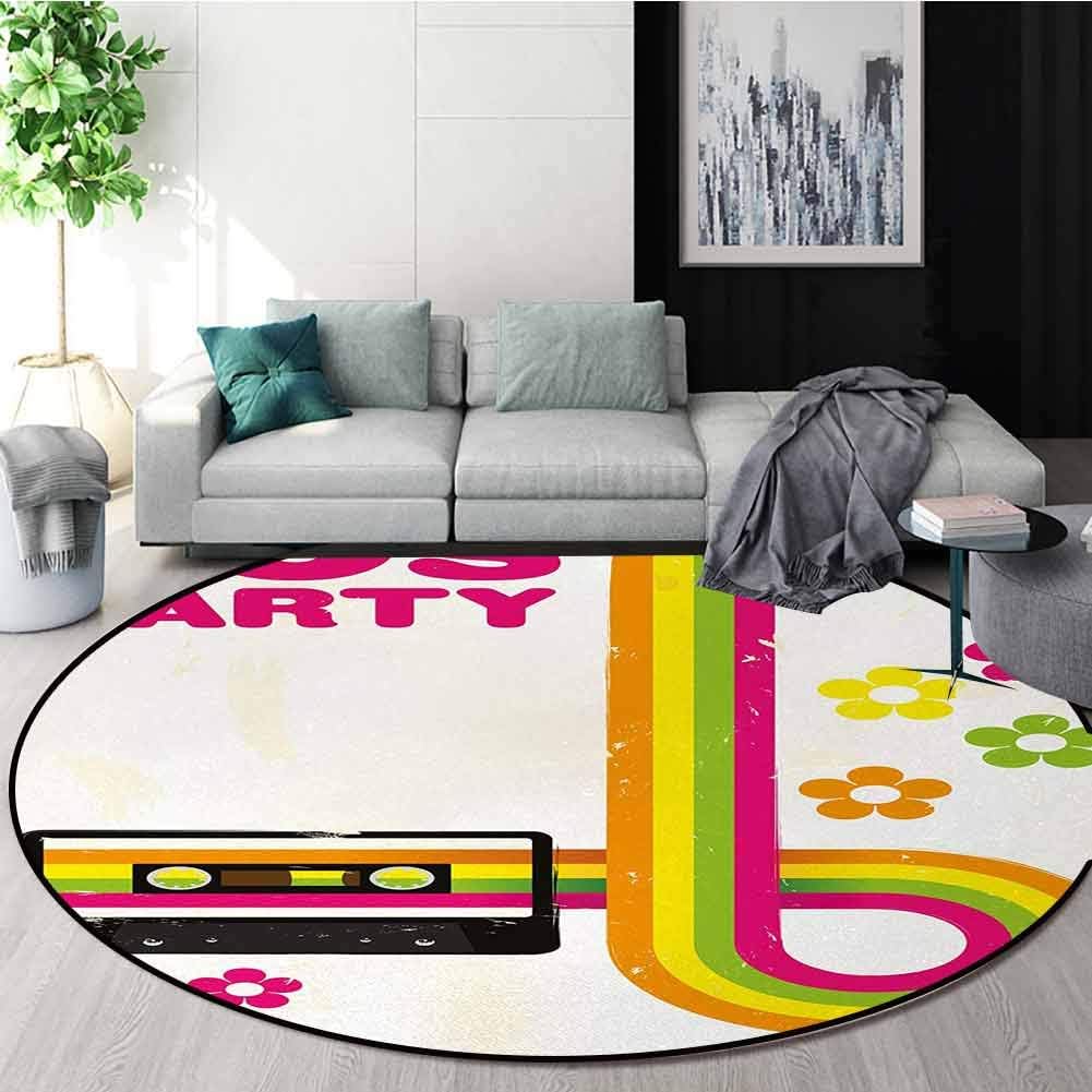 Amazon Com Despkon Home 70s Party Art Deco Pattern Non Slip Round Area Rug Party Flyer Inspired Cute And Curved Stripes With Daisies Audio Cassette Tape Foam Mat Bedroom Decor Bedroom Round 55 Inch Multicolor Home Kitchen