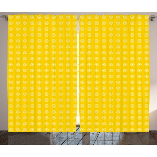 Yellow Decor Curtains 2 Panels Set Hippie Flower Children S 70s Themed Pattern Floral Daisy Design Artprint Window Drapes For Living Room Bedroom 108w X 90l Inches Yellow And White By Ambesonne