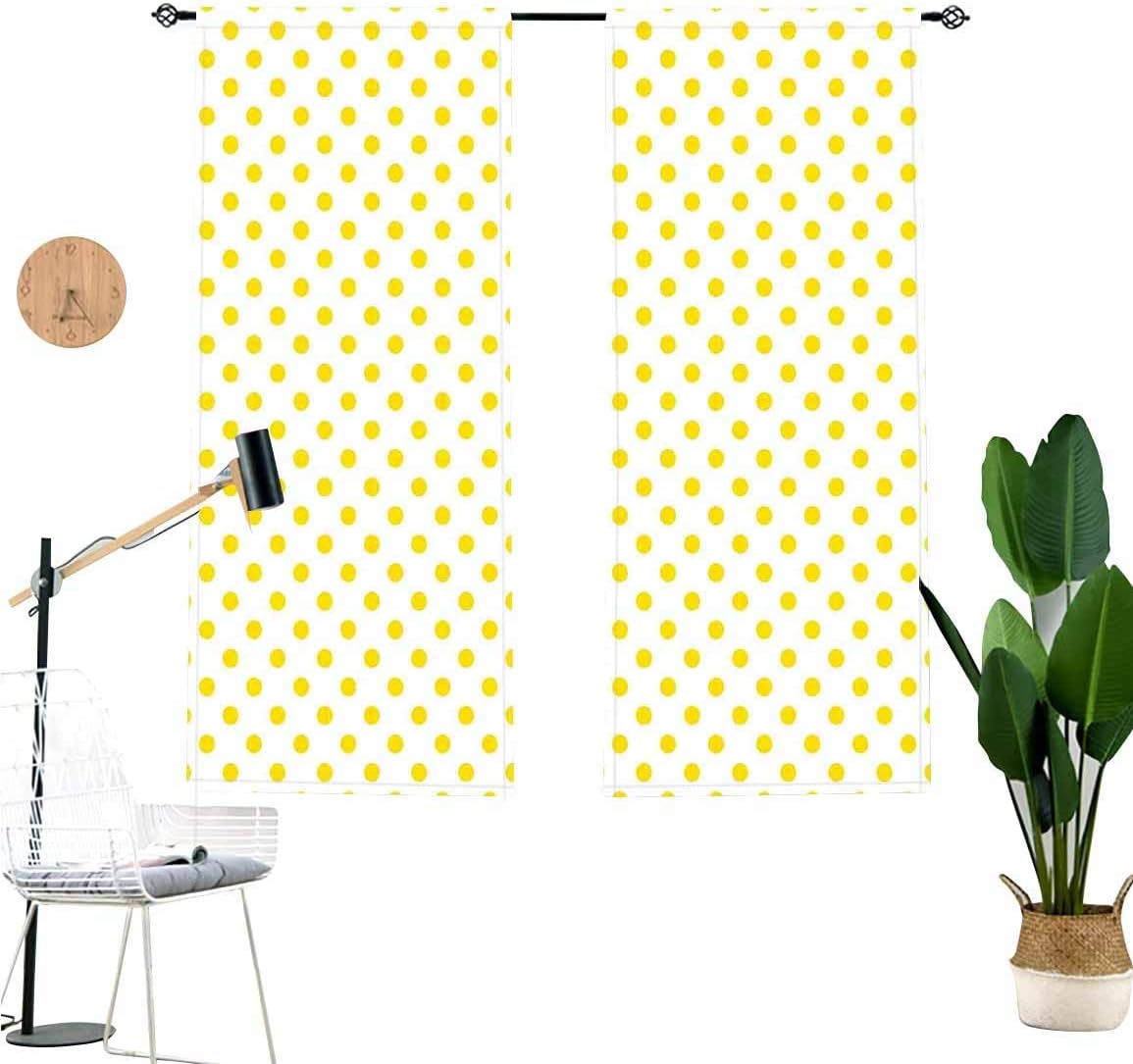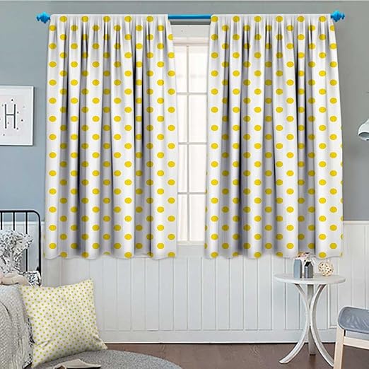 Amazon Com Yellow Decorative Blackout Curtains Picnic Like Cute 50s 60s 70s Themed Yellow Spotted White Decor Light Blocking Curtains For Living Room 2 Panel Set W36 X L45 Each Panel Home Kitchen