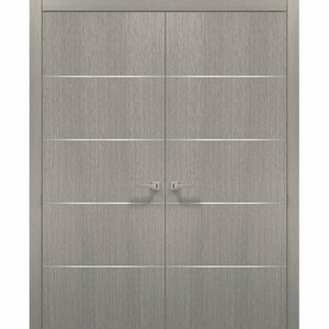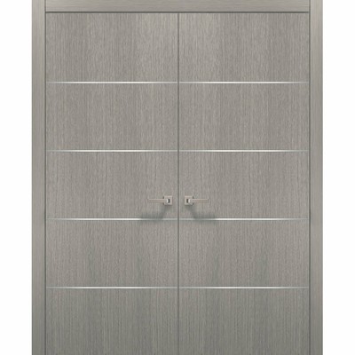 French Double Interior Doors 72 X 80 With Hardware Planum 0020 Grey Oak Pre Hung Panel Frame Trims Bathroom Bedroom Interior Sturdy Door Walmart Com Walmart Com