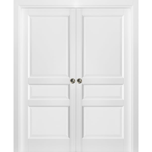 French Double Pocket Doors 72 X 80 With Frames Lucia 31 Matte White Kit Trims Rail Hardware Solid Wood Interior Pantry Kitchen Bedroom Sliding Closet Sturdy Door Walmart Com Walmart Com
