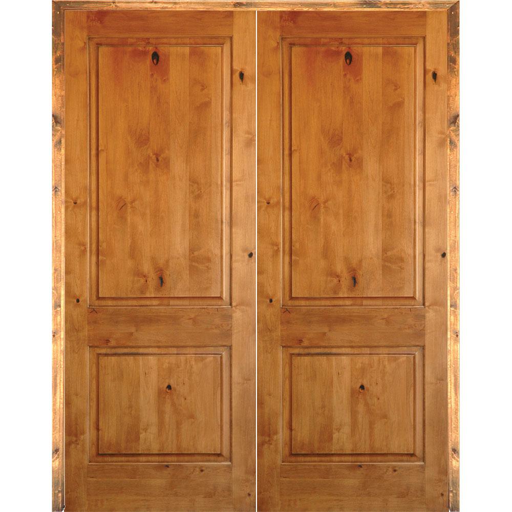 Krosswood Doors 72 In X 80 In Rustic Knotty Alder 2 Panel Square Top Both Active Solid Core Wood Double Prehung Interior French Door Phid Ka 305 60 68 138 Aa The Home Depot