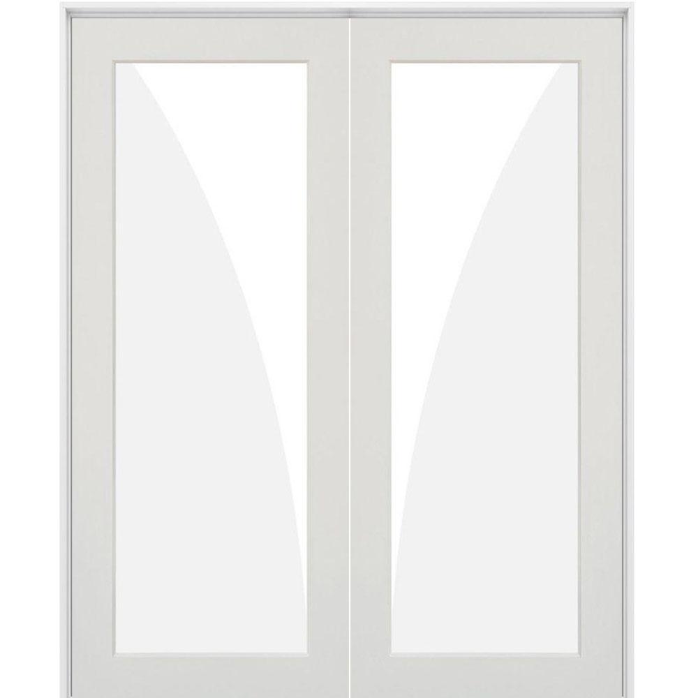 Solid French Double Doors 72 X 80 Inches Clear Glass 3 Lites Lucia 2555 Matte White Wood Solid Panel Frame Trims Closet Bedroom Sturdy Doors Amazon Com