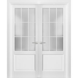 French Double Panel Lite Doors 72 X 80 With Hardware Quadro 4002 White Silk With Frosted Opaque Glass Pre Hung Panel Frame Trims Bathroom Bedroom Interior Sturdy Door Amazon Com