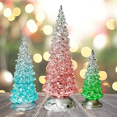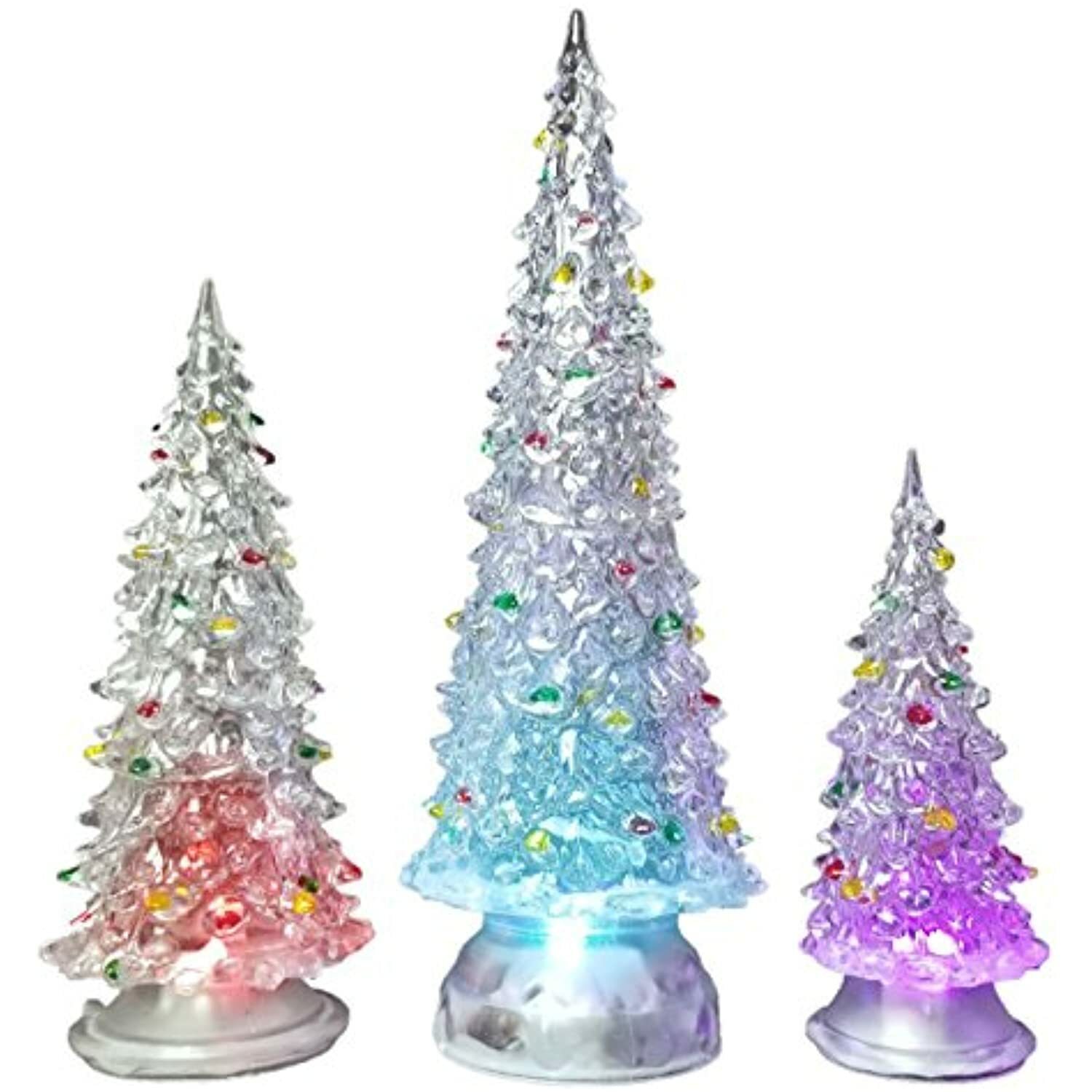 Amazon Com Zarup 3 Pcs Lighted Christmas Tree Colorful Led Acrylic Night Light Christmas Decoration Table Top Christmas Trees Holiday Decoration Set Of 3 Multicolored Light Up Glitter Tabletop Figurine Home Kitchen