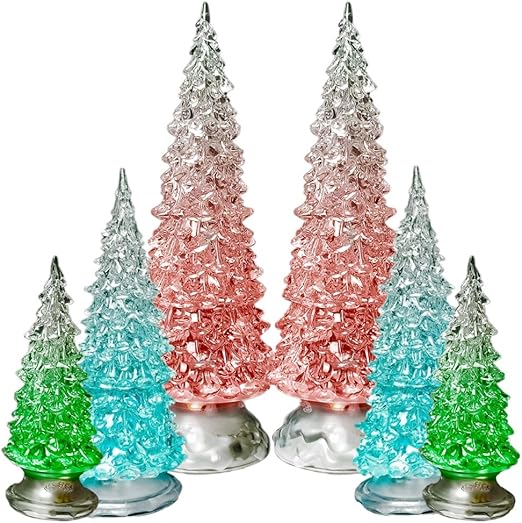 Amazon Com Banberry Designs Table Top Christmas Trees Set Of 6 Led Lighted Acrylic Christmas Trees Holiday Decoration Set Of 6 Assorted Sizes 10 7 5 5 5 H Home Kitchen