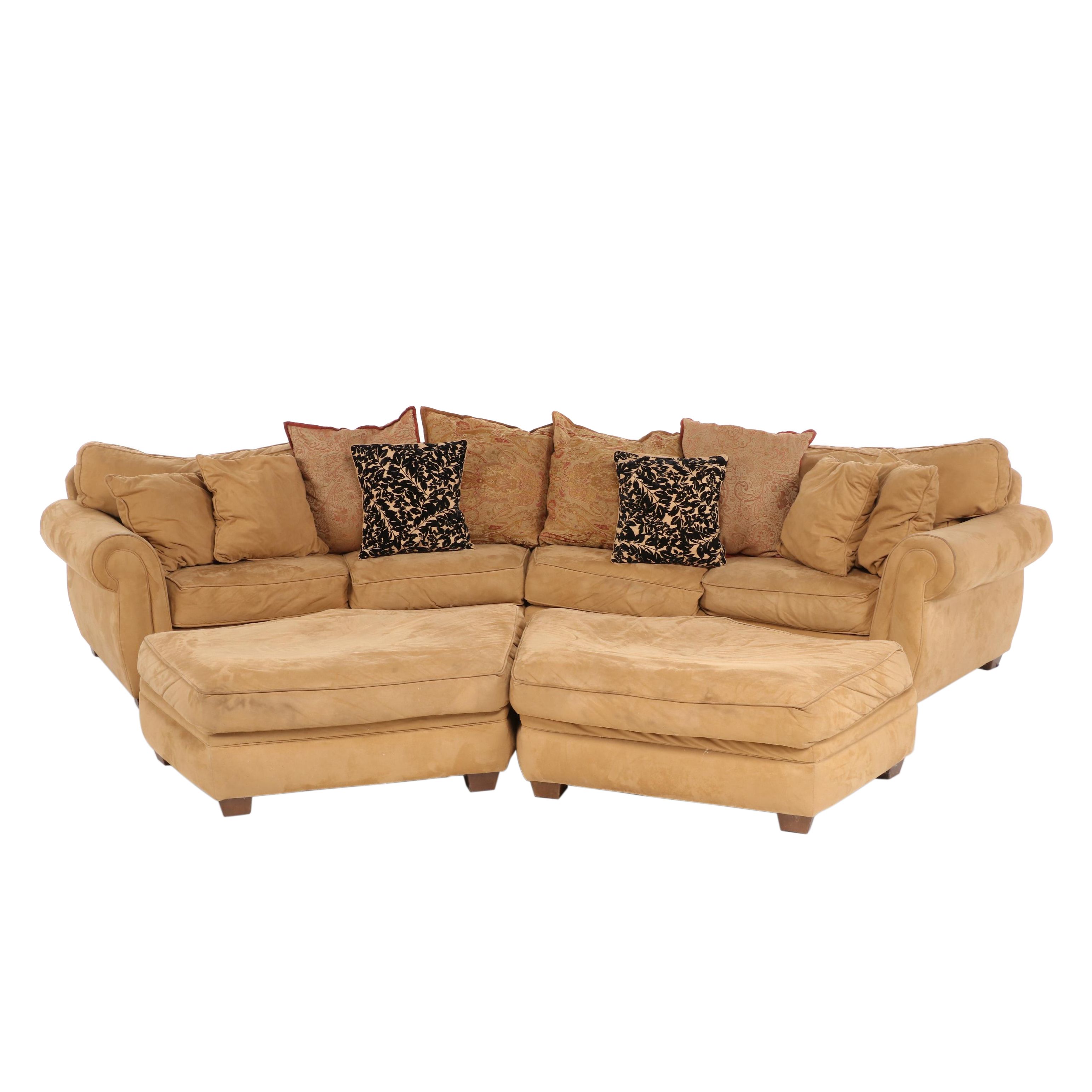 Alan White Suede Two Part Sectional Sofa Plus Two Ottomans Ebth