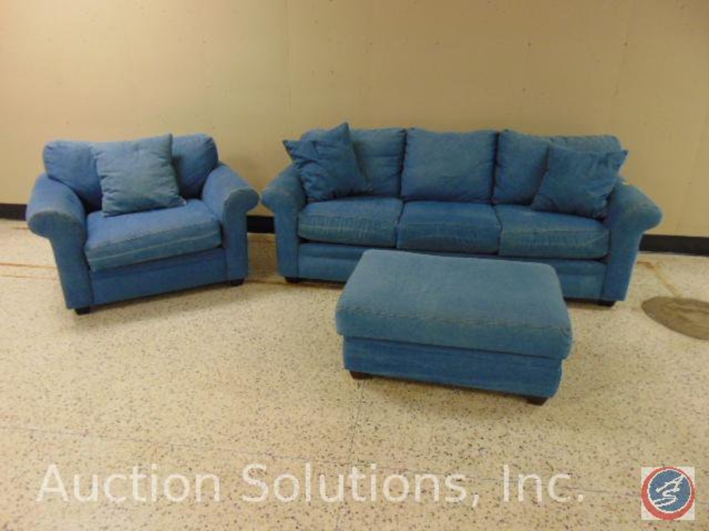 Alan White Furniture Denim 3 Pc Set Sofa 90 X 13 X 39 In Loveseat 48 X 36 X 38 In Footstool 38 Estate Personal Property Furniture Online Auctions Proxibid