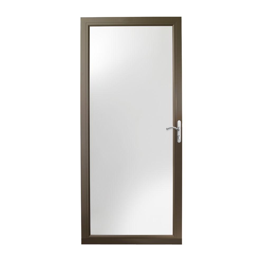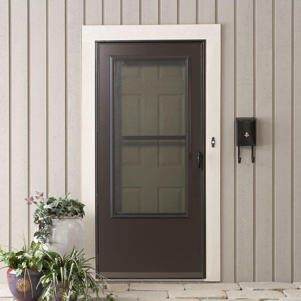 The 200 Series 36 In Bronze Aluminum Traditional Storm Door With Black Hardware Features Durable Self Storin Storm Door Glass Storm Doors Aluminum Storm Doors