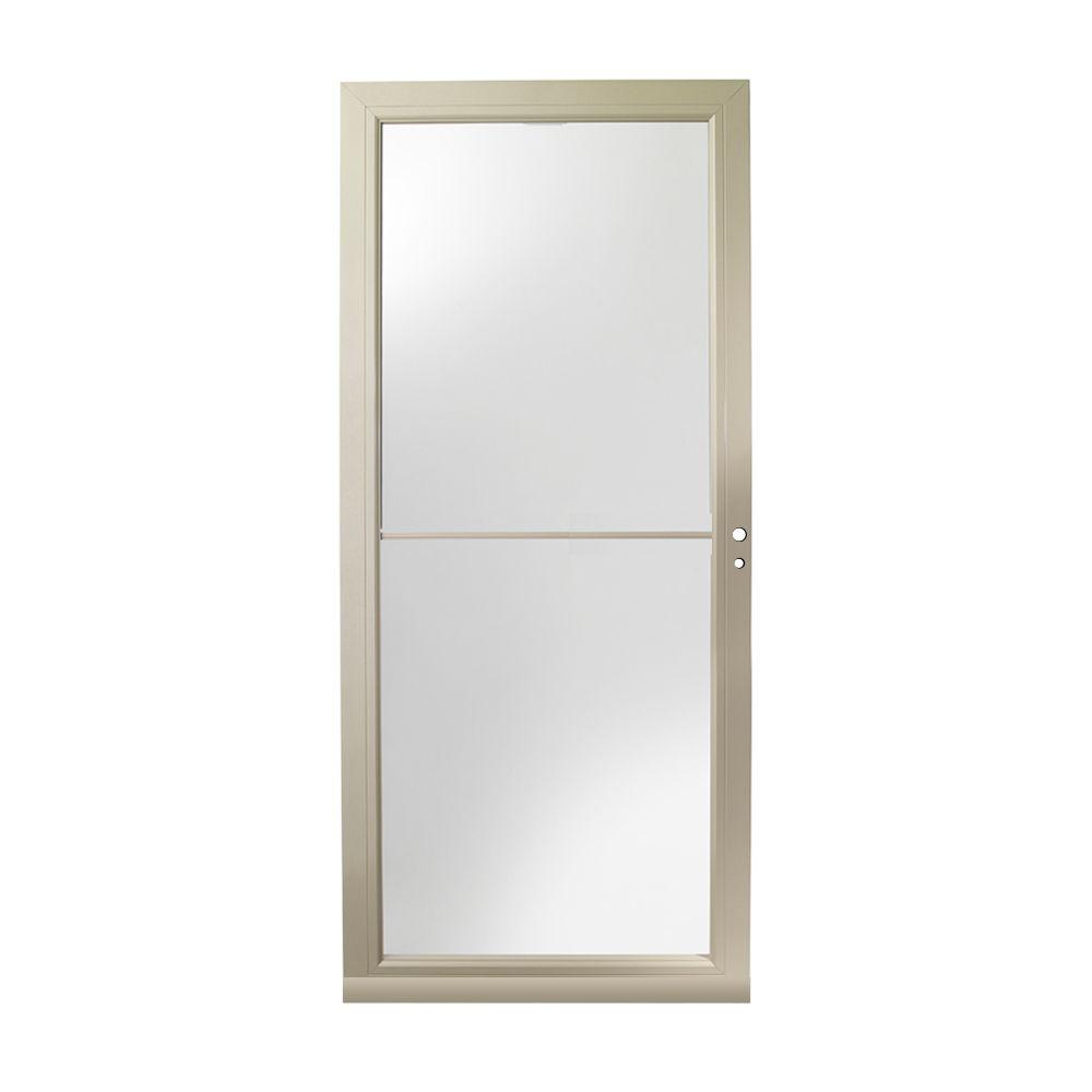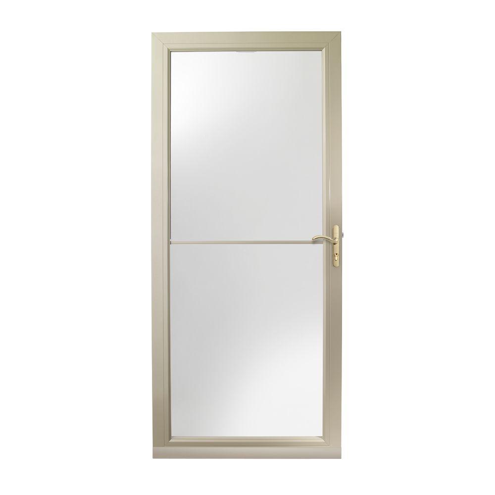 Emco 36 In X 80 In 400 Series Almond Universal Self Storing Aluminum Storm Door With Brass Hardware E4s36al The Home Depot