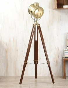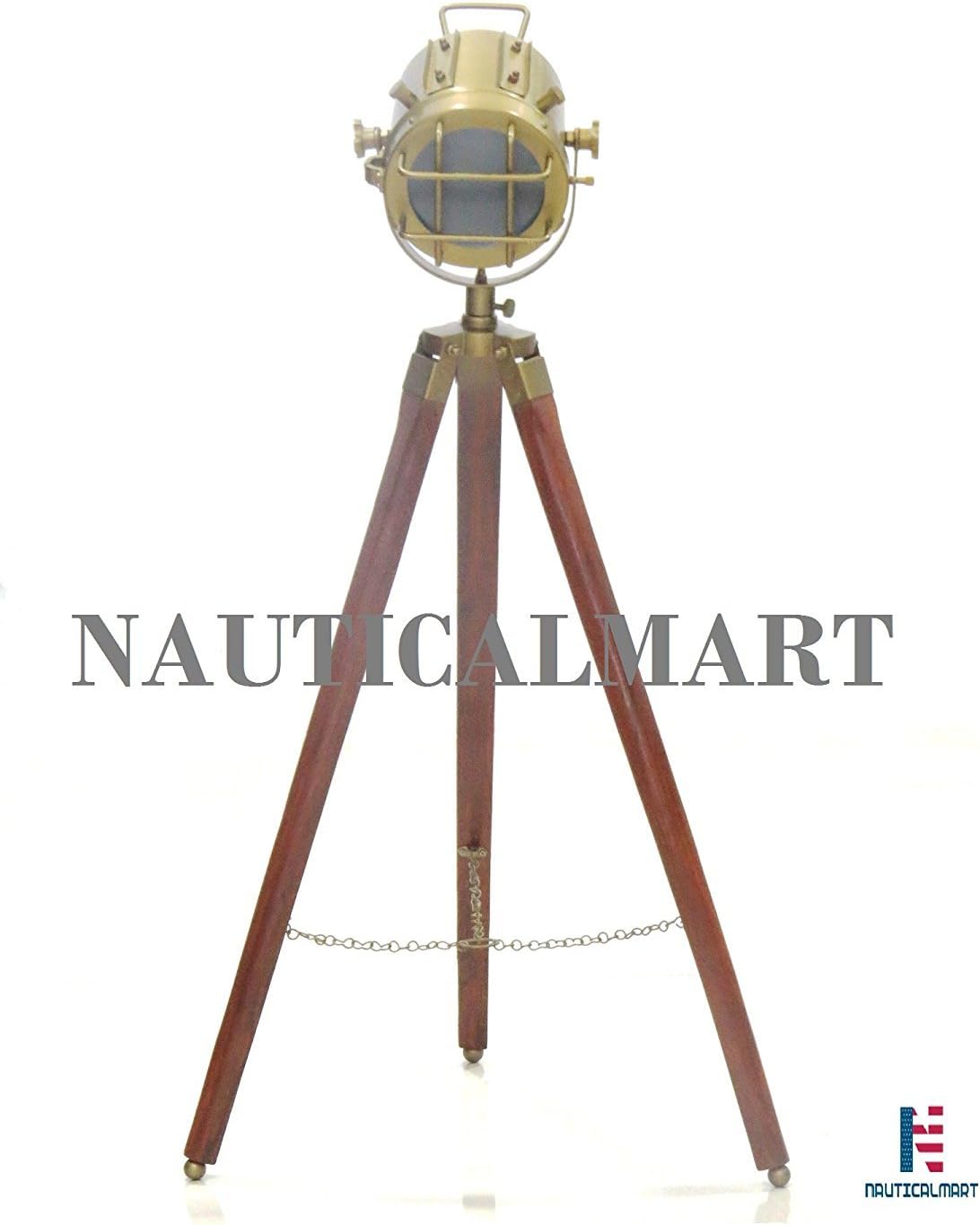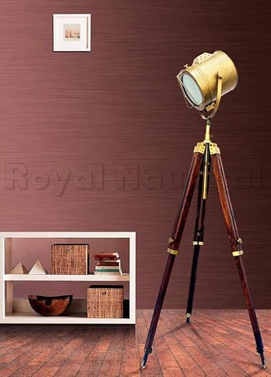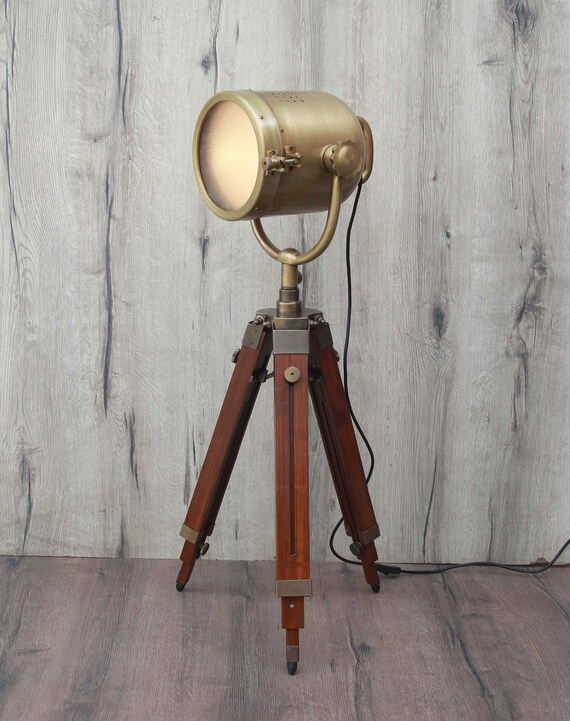 Amazon Com Vintage Marine Led Tripod Floor Lamp Antique Searchlight Wooden Adjustable Stand Retro Studio Spotlight Focus Lamps Home Office Decorative Lighting Home Improvement