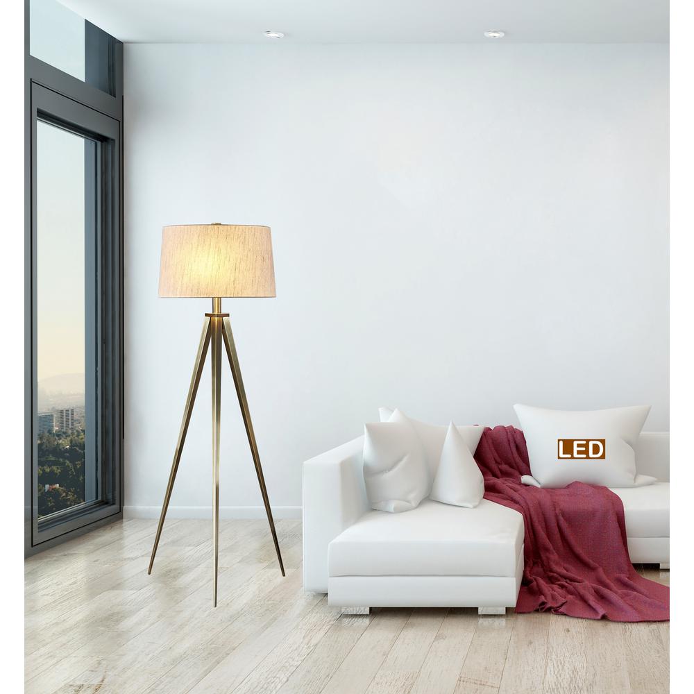 Artiva Hollywood 63 In 2 Light Antique Satin Brass Led Tripod Floor Lamp With Dimmer Led501108abt The Home Depot