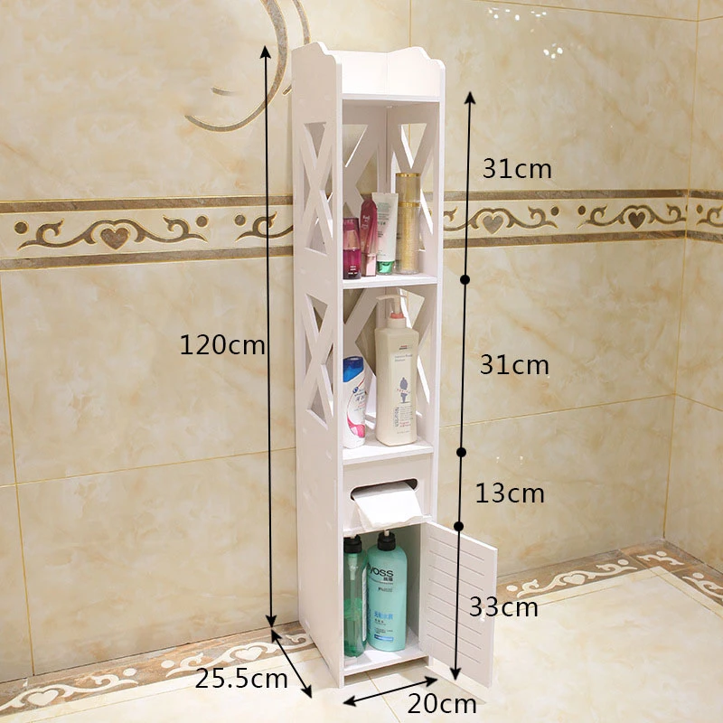 3 In 1 Pvc Slim Bathroom Cupboard White Mrx Bathroom Cabinet Floor Standing Storage Unit With Toilet Paper Towel Roll Holder Furniture Bathroom Furniture