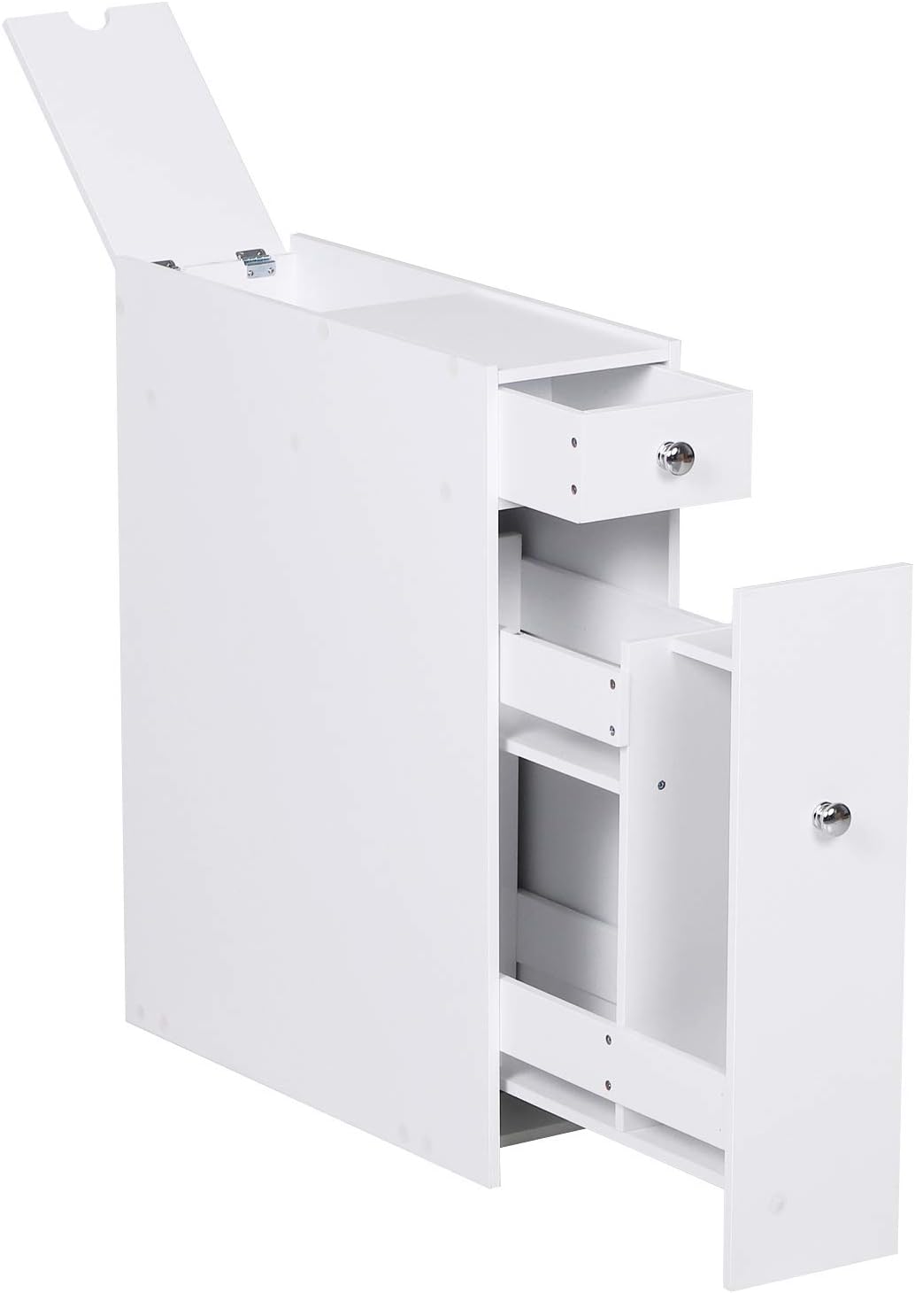 Amazon Com Homcom Bathroom Floor Organizer Free Standing Space Saving Narrow Storage Cabinet Bath Toilet Paper Holder With Drawers White Furniture Decor