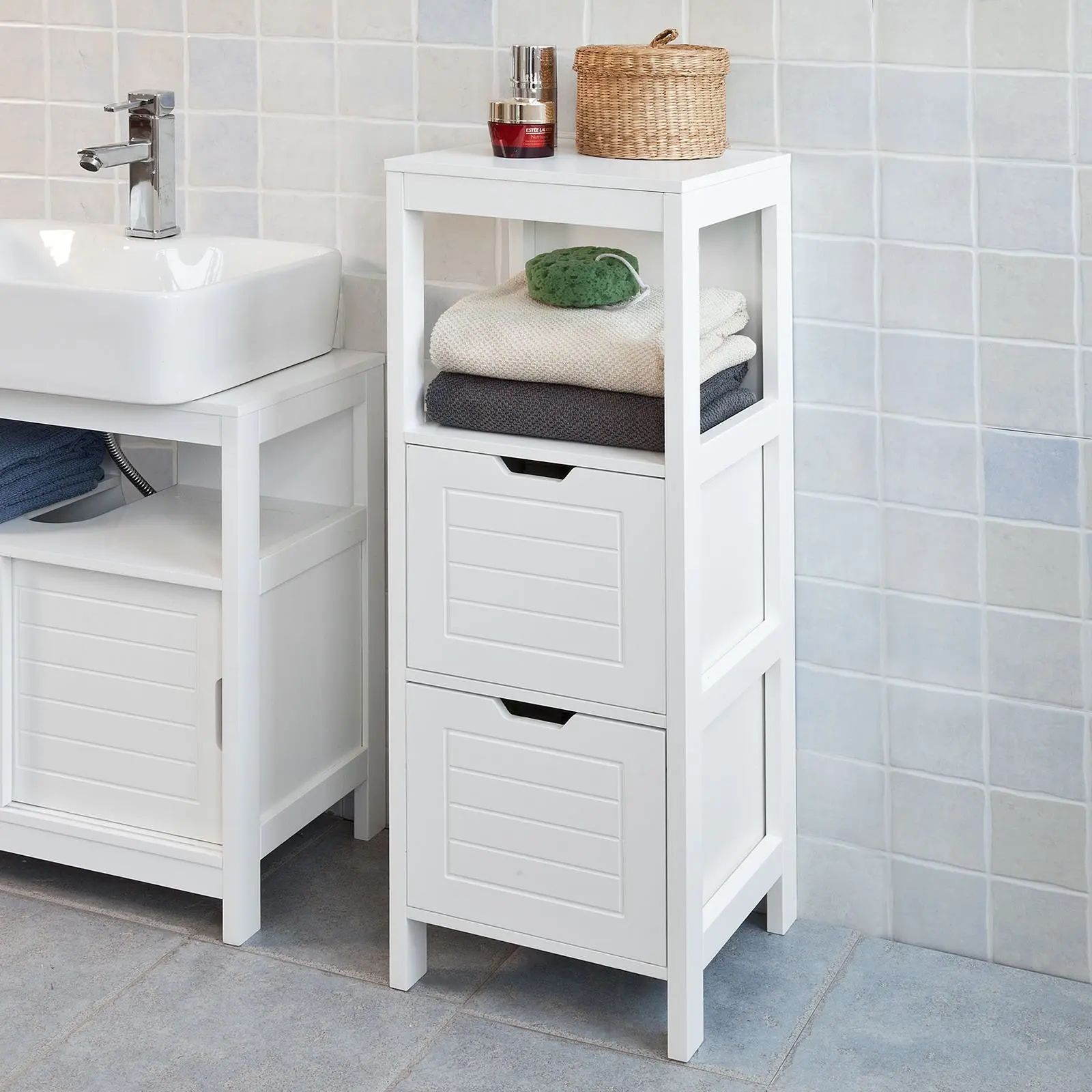 Buy Haotian Frg127 W White Floor Standing Bathroom Storage Cabinet Unit With 1 Shelf And 2 Drawers Caraway Floor Cabinet Wall Shutter Door Bathroom Organizer Cupboard Shelf In Cheap Price On Alibaba Com