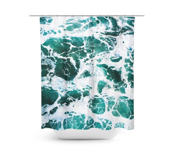Shower Curtain Sea Foam Waves Green Seascape Coastal Nautical Etsy