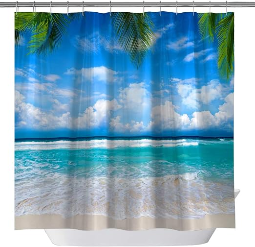 Amazon Com Sevendec Sea Wave Beach Waterproof Shower Curtain Blue Ocean Bathroom Decor Shower Curtain With Hooks W71 X L71 Home Kitchen