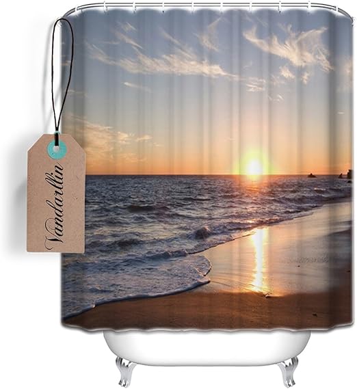 Amazon Com Vandarllin Tm Beach Shower Curtain Ocean Waves Sunset Pattern For Bathroom Decor Polyester Fabric Resistant And Waterproof Bath Curtains 72 X 72 Inch Blue Gold Brown Home Kitchen