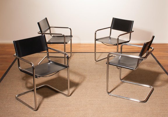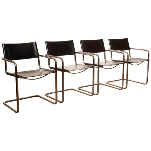 Mg5 Black Leather Dining Chairs By Mart Stam For Matteo Grassi 1970s Set Of 4 For Sale At Pamono