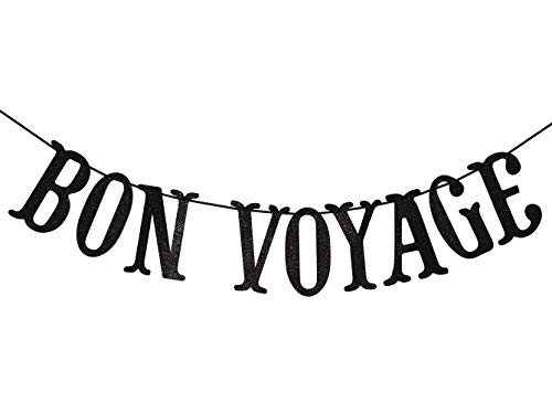 Innoru Bon Voyage Black Glitter Cursive Party Banner Moving Away Retirement Party Decorations Sign