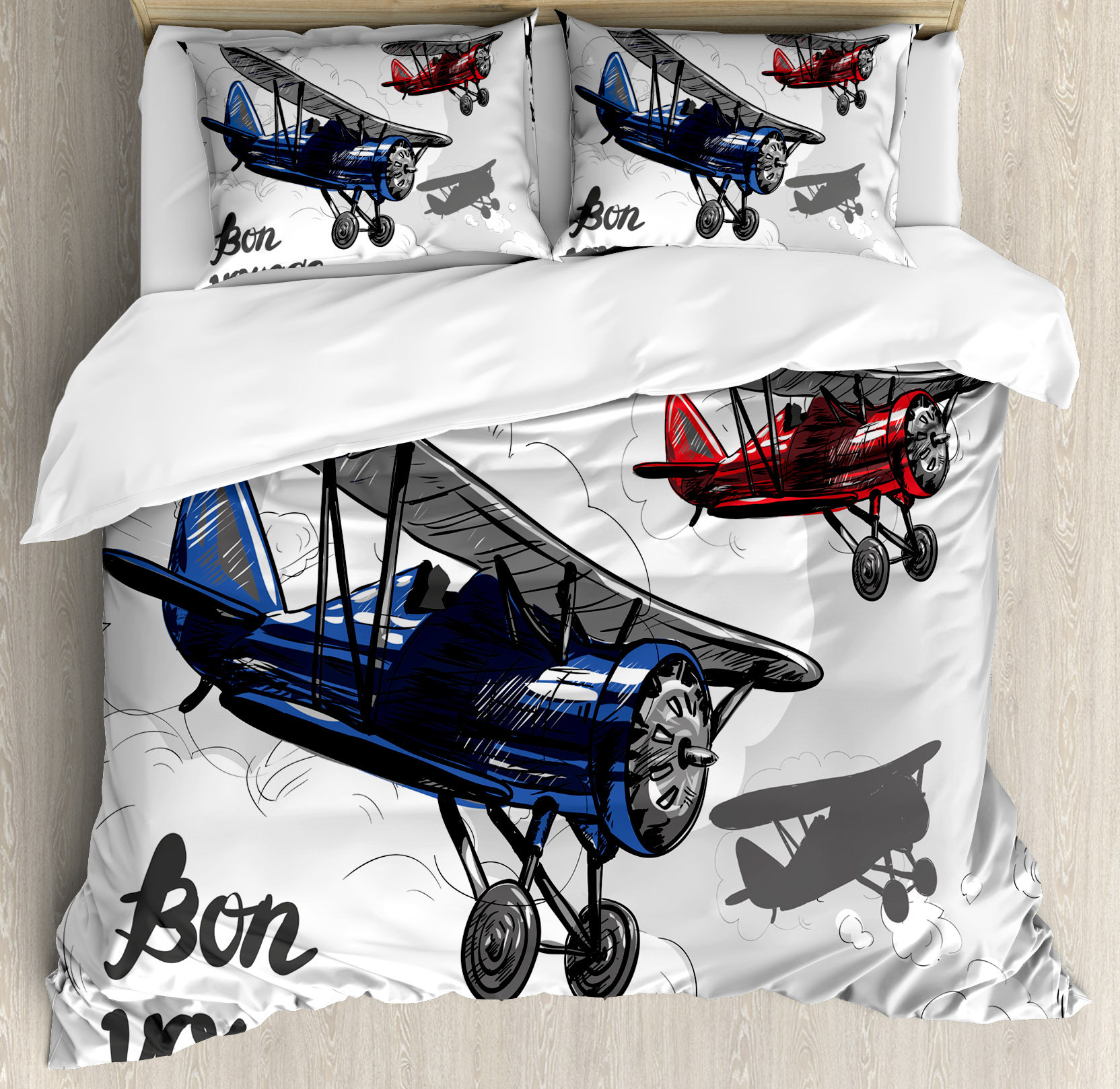 Ambesonne Going Away Party Decorations Retro Airplane Poster Inspired Bon Voyage Lets Travel Fly Duvet Cover Set