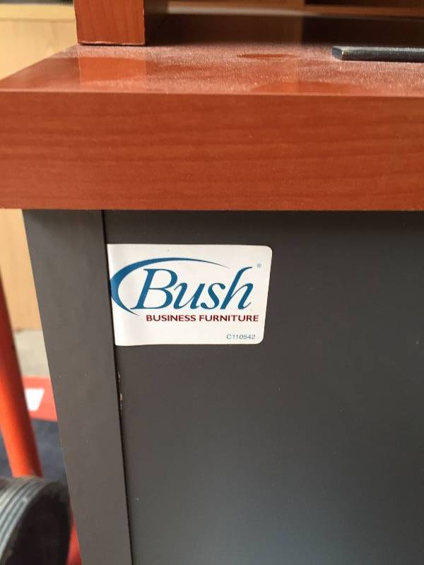 Bush Quality Furniture Hanson Cherry Veneer Graphite Business Center Workstation Includes 2 Lateral File Storage Cabinet Drawers Large Credenza Hutch Retails 1200 Excellent Condition Jireh Trading Company