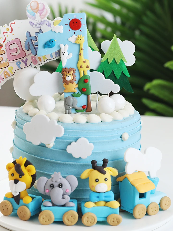 Animal Train 1 Cake Topper Kids 1st Birthday Party Decoration Boy Prince One Year Old First Birthday Cupcake Cake Toppers Cake Decorating Supplies Aliexpress