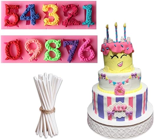 Amazon Com 3d Number 0 9 Letter Silicone Molds With 20pcs Lollipop Sticks Sugarcraft Chocolate Candy Fondant Mold Candle Resin Cake Decoration Tools For Baby Shower Birthday Party Anniversary Kitchen Dining