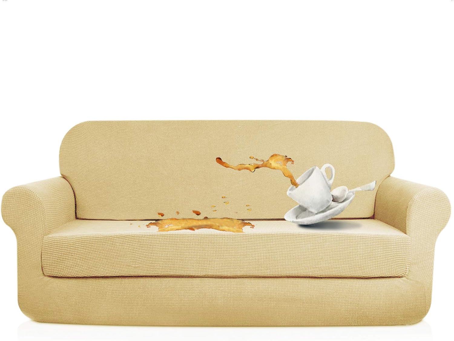 Amazon Com Aujoy Stretch 2 Piece Sofa Covers Water Repellent Dog Cat Pet Proof Couch Slipcovers Protectors Sofa Beige Kitchen Dining