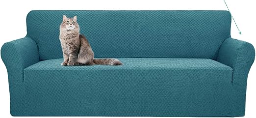 Amazon Com Yemyhom Couch Cover Latest Jacquard Design High Stretch Sofa Covers For 3 Cushion Couch Pet Dog Cat Proof Slipcover Non Slip Magic Elastic Furniture Protector Sofa Teal Home Kitchen
