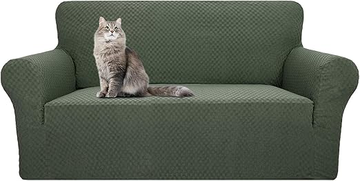 Amazon Com Yemyhom Couch Cover Latest Jacquard Design High Stretch Sofa Covers For 2 Cushion Couch Pet Dog Cat Proof Loveseat Slipcover Non Slip Magic Elastic Furniture Protector Loveseat Army Green Kitchen