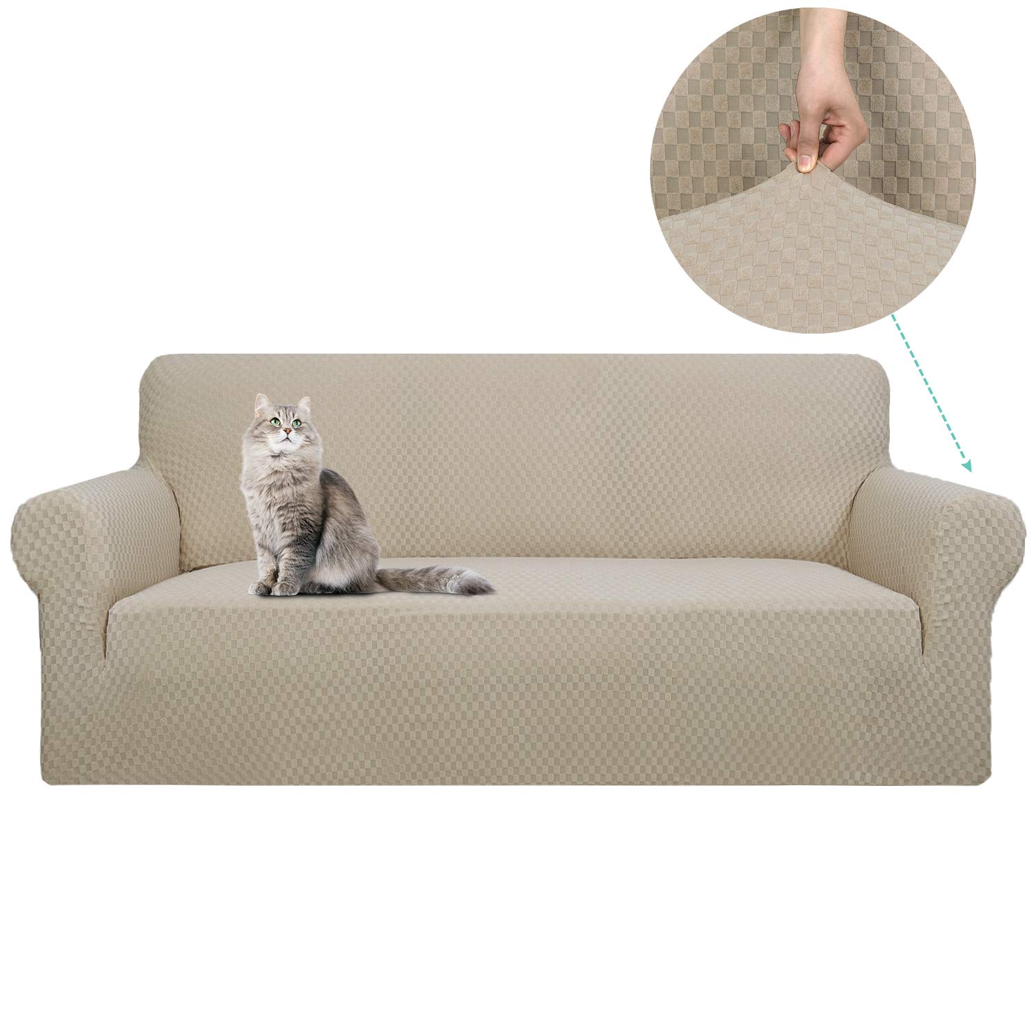 Amazon Com Aujoy Stretch Sofa Cover Water Repellent Couch Covers Dog Cat Pet Proof Couch Slipcovers Protectors Sofa Beige Kitchen Dining