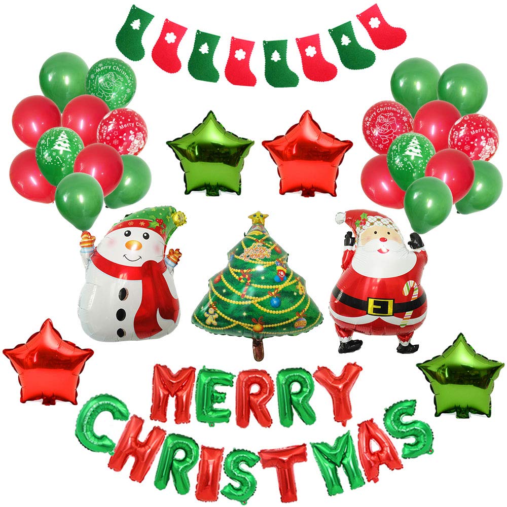 Amazon Com Jaykids Christmas Party Decorations Red And Green Balloons Set For Xmas Party Supplies Merry Christmas Balloon Christmas Stocking Banner Santa Snowman Christmas Tree Star Balloons Toys Games