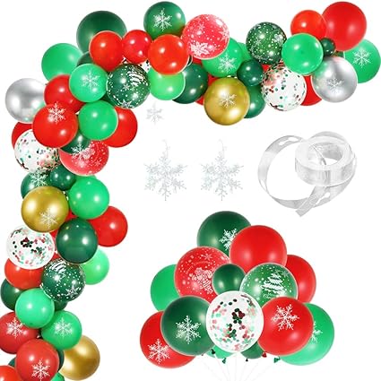 Amazon Com Auihiay 150 Pieces Christmas Balloons Garland Arch Kit With Snowflake Ornaments For Xmas New Year Party Decorations Toys Games