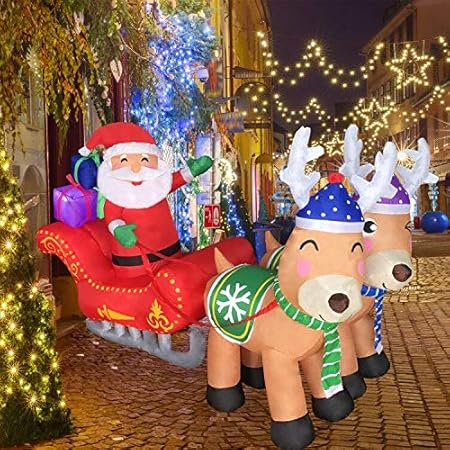 Amazon Com Zalalova Christmas Inflatable Decorations 7 Ft Christmas Inflatable Santa On Sled With Two Cute Reindeer Blow Up Led Lights For Indoor Outdoor Yard Lawn Xmas Decoration Garden Outdoor