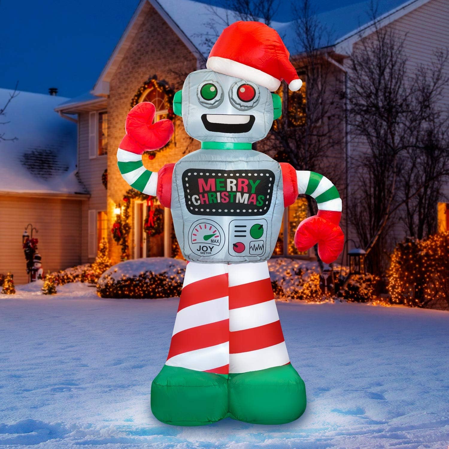 Amazon Com Holidayana 6 Ft Christmas Inflatable Robot Yard Decoration 6 Ft Tall Airblown Lawn Decoration Bright Internal Lights Built In Fan And Included Stakes And Ropes Garden Outdoor