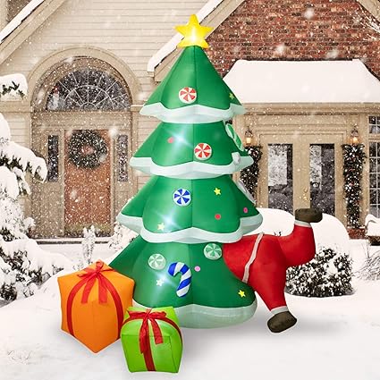 Amazon Com Rocinha Christmas Inflatables Outdoor Decorations 7 9 Ft Tall Inflatable Christmas Tree With Gift Boxes And Santa Claus For Blow Up Yard Decoration Lawn Inflatables Xmas Home Outside Indoor Display Health