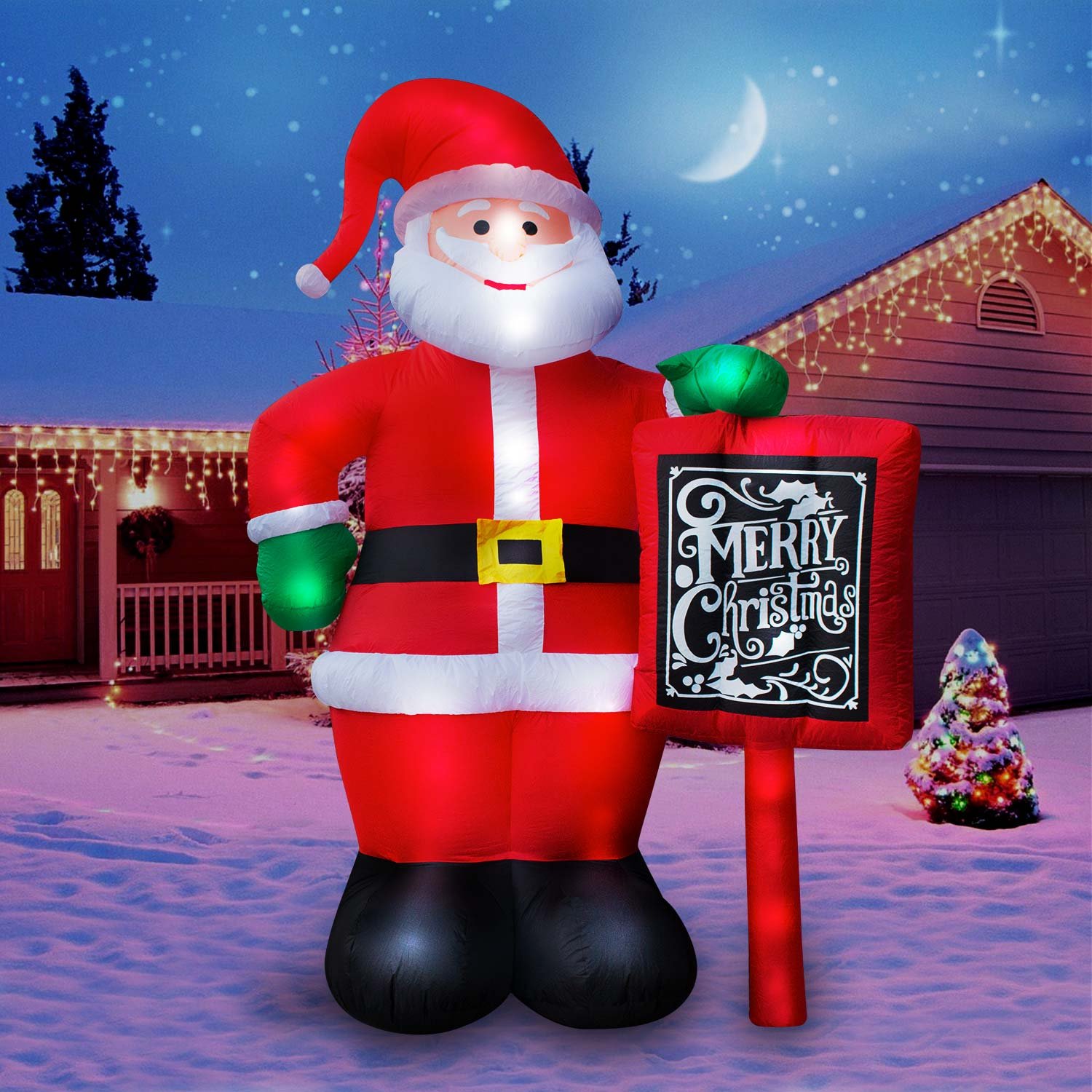 Holidayana Giant Santa Christmas Inflatable 10 Ft Tall Santa Clause With Merry Christmas Sign Inflatable Outdoor Yard Decoration With Led Lights Built In Fan And Anchor Ropes Buy Online In China At