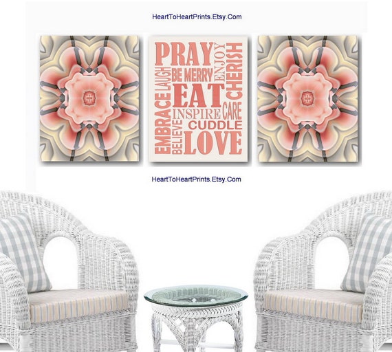 Coral Kitchen Wall Art Set Of 3 Prints Kitchen Quote Printable Etsy