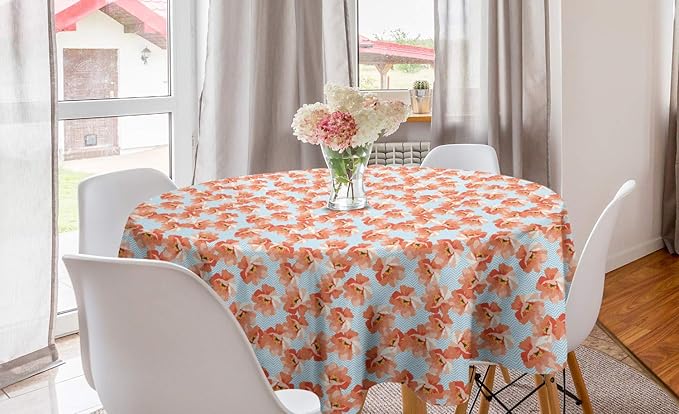 Amazon Com Ambesonne Aqua And Coral Round Tablecloth Pastel Toned Bouquet Of Feminine Flowers On Chevron Zigzag Lines Circle Table Cloth Cover For Dining Room Kitchen Decoration 60 Yellow Aqua And Coral Home