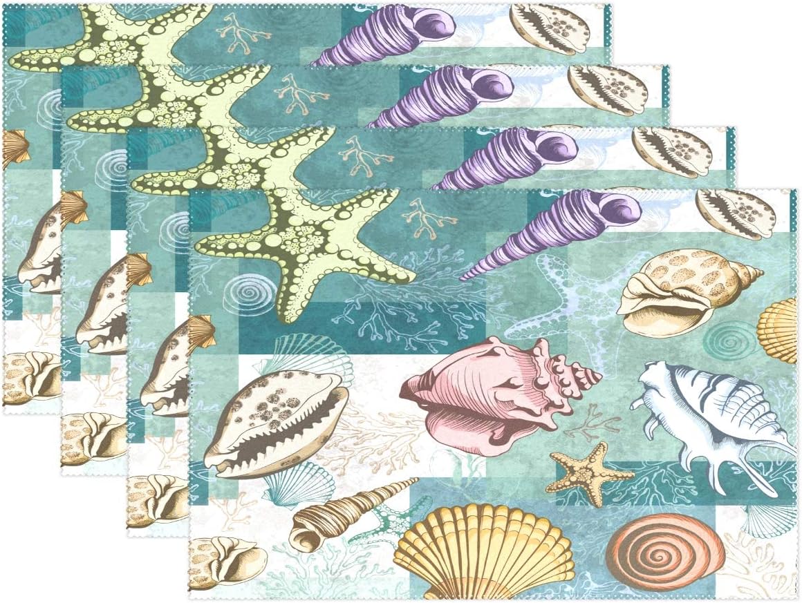 Amazon Com Naivey Placemats Set Of 6 Seashell Coral Starfish Non Slip Heat Resistant Table Mats For Dining Table Kitchen Decor 12 X 18 Home Kitchen