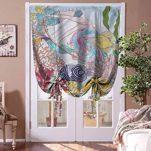 Amazon Com Houselookhome Curtain Panels Mermaid Room Darkening Curtain Sketchy Sea Coral Reefs Kitchen Decor Rod Pocket Panel 36 W X 72 L Home Kitchen