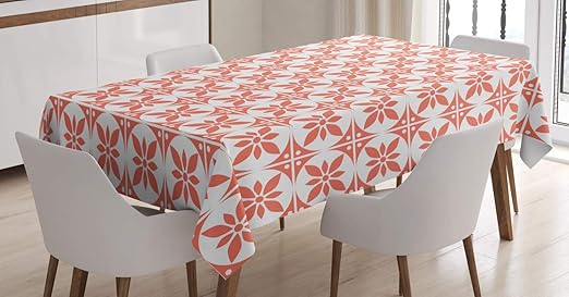 Amazon Com Lunarable Coral And White Tablecloth Old Fashioned Tiles Floral Motifs In Squares With Little Dots Rectangular Table Cover For Dining Room Kitchen Decor 60 X 90 Coral And White Home