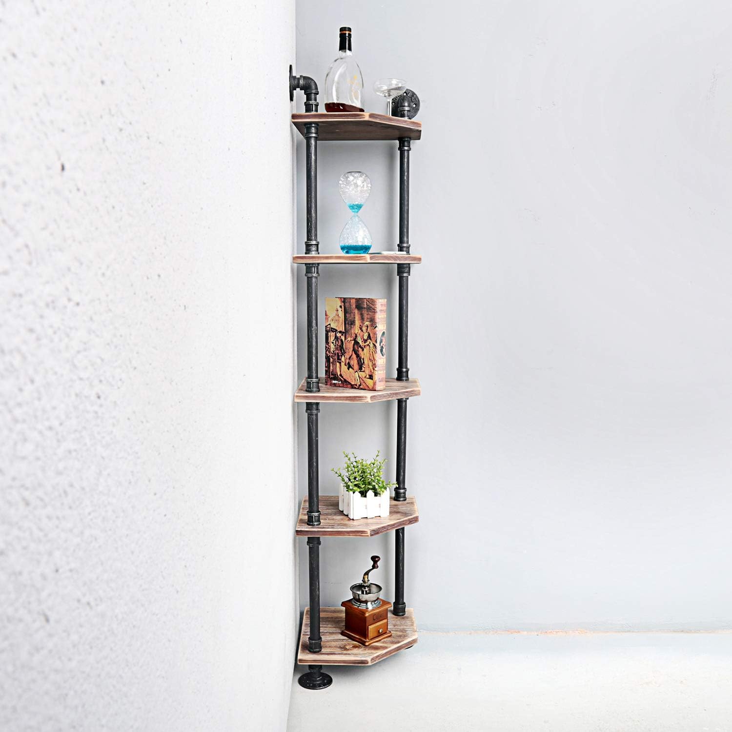 Amazon Com Womio Industrial Pipe Shelves 5 Tier Rustic Corner Shelves With Real Wood Corner Bookshelf Display Stand Metal Standing Bookcase Home Decor Shelf Units Furniture Decor