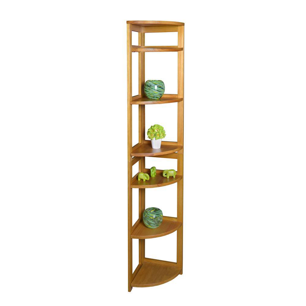 Regency 67 In Medium Oak Wood 6 Shelf Foldable Corner Bookcase Hdnec6712mo The Home Depot